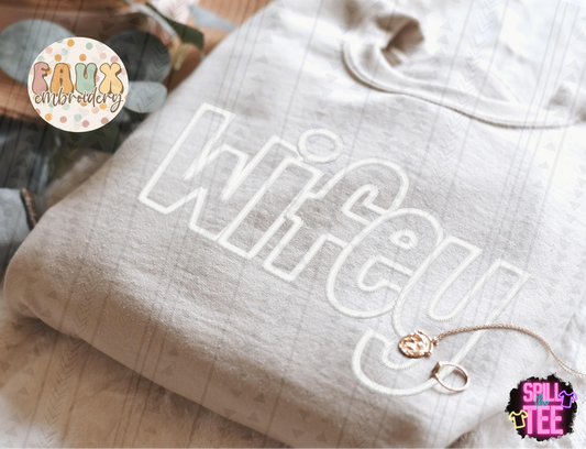 BRIDE OR WIFEY WHITE FAUX EMBROIDERY