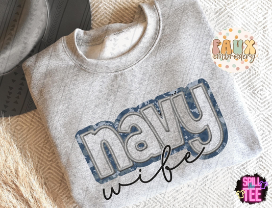 NAVY MOM OR WIFE FAUX EMBROIDERY
